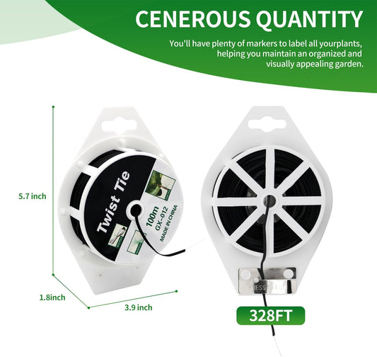 (2 Reels) Garden Wire, Twist Ties Heavy Duty with Cutter 328 Ft Multi-Function Black Coated Tape to Support Plant Tie Up Bags for Home Office Black(328 Feet / 100 m)