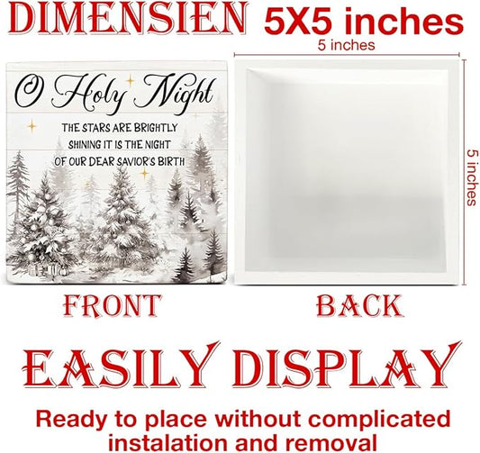 Holy Night Christmas Decor - Christian Nativity Wooden Sign Rustic Home Shelf Desk Decor - 5 x 5 Inches