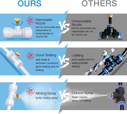 HOMENOTE 10 Pack Brass Misting Nozzles for Outdoor Cooling System, Mister Replacement Nozzles Tee and Plugs for 1/4" Tubing