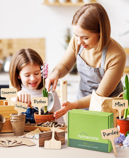 Homenote Bamboo Plant Labels 100Pcs Plant Tags for Seedling T-Type Tags for Plants Outdoor Garden Markers Vegetable Seedling(2.36 * 4“)