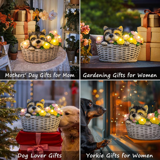 HOMEIMPRO Solar Garden Decor Dog Garden Gifts for Women, Yorkie Puppy Lovers Gifts Mothers Day Birthday for Mom Grandma,Outdoor Statues Solar Lights, 8LED Lights Balcony Yard Decor, Patio