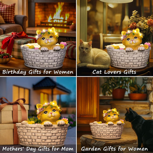 HOMEIMPRO Cat Solar Lights Garden Gifts for Mom, Garden Decor for Outside, Cat Solar Statue Lights, 8LED Kitten Yard Decorations, Mothers Day Birthday Gifts Women Wife