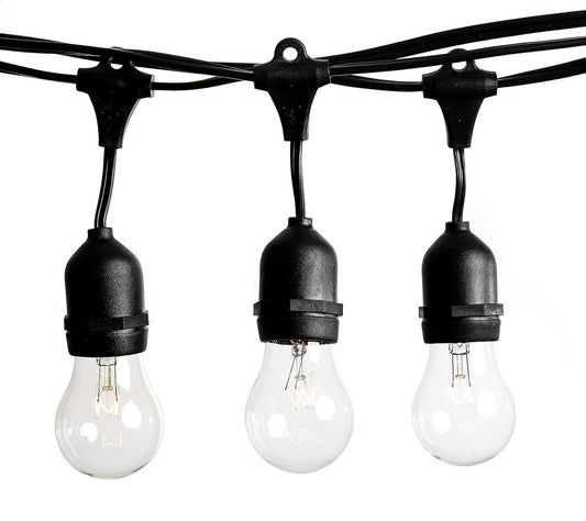 Hometown Evolution, Inc. Commercial E26 String Lights with 16 Gauge Wire (50 Foot 25 Socket, S14 11 Watt Clear Bulb)