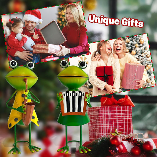 HONGLAND Metal Frog Garden Decor - Metal Frog Outdoor Statue -Funny Garden Frog Decorations - 3D Frog Figurine - Christmas Holiday Housewarming Gifts Lawn Patio Yard Garden Decor (Saxophone)
