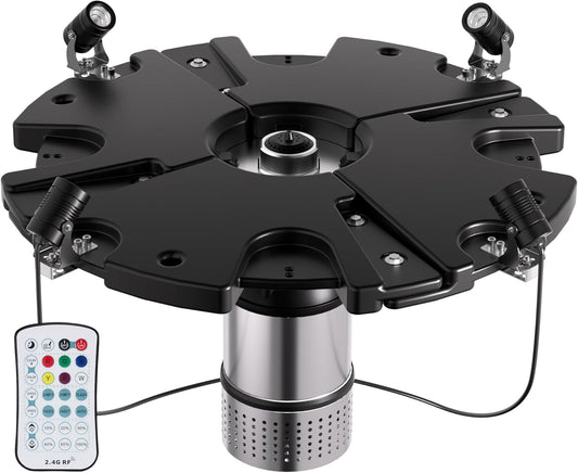 HQUA FS01 120V, 1/2HP, Large Pond Floating Fountain with FSL01 LED RGB Color-Changing Light Sets, 100’ cord, 13000 GPH, Two spray patterns 32'x12' and 18'x6'