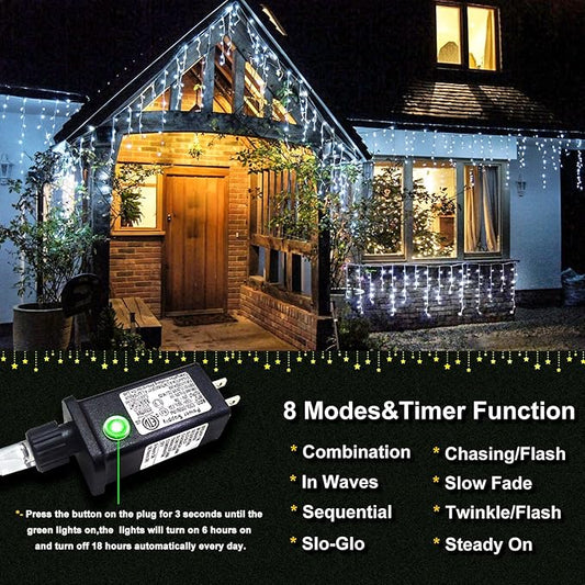 Icicle Christmas Lights Outdoor - 33ft 400 LED Icicle Lights for Outside with 75 Drops, Waterproof Plug in Christmas Light with Timer for Party, Holiday, Wedding, Christmas Decoration, Multicolor