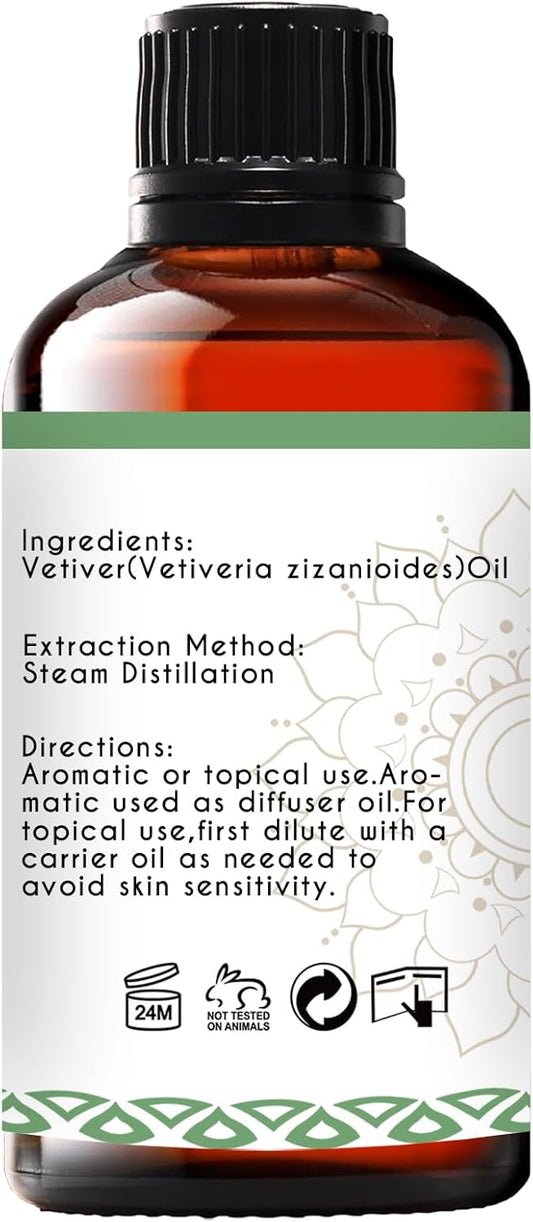 Vetiver Essential Oil Organic for Diffuser Skin Hair- 1 Oz
