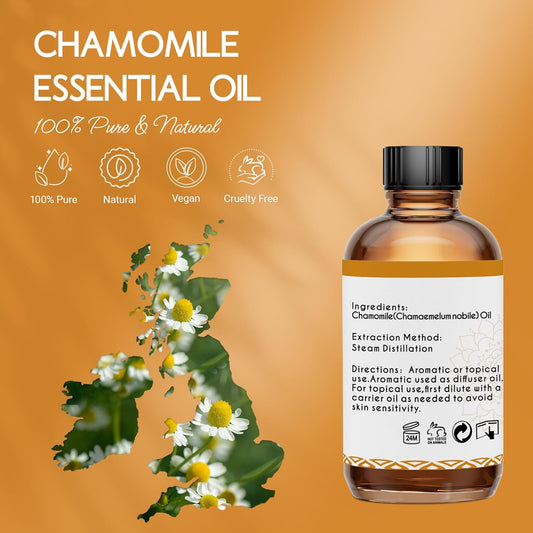Chamomile Essential Oil, Pure Natural Chamomile Oil for Skin Body Hair Diffuser - 4 Oz