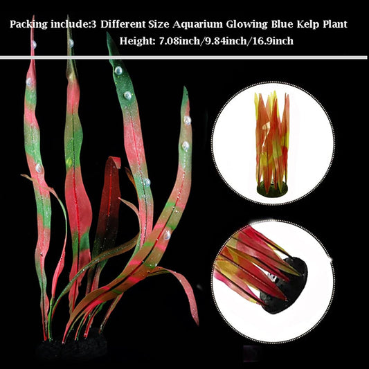 3Pcs Soft Silicone Aquarium Plants Set Glowing Kelp Fish Tank Plants Decor Artificial Red Aquarium Plant Simulation Artificial Water Grass for Fish Tank,7.08in9.84in16.9in