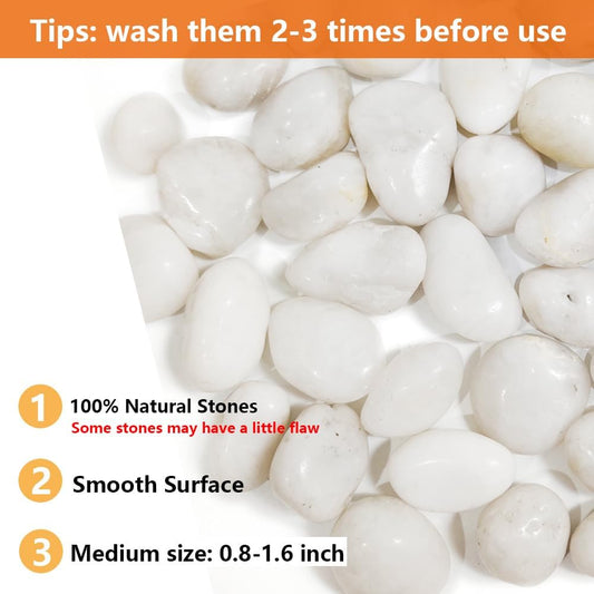 HappyFiller Natural Decorative White Pebbles Polished Rocks Stones for Aquarium Gravel,Fish Turtle Tank,Outdoor Indoor Succulents Plants Top Dressing,Graden Landscaping,2 LB