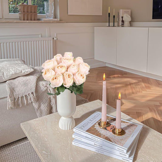 12Pcs Realistic Fake Champagne Roses Faux Flowers with Long Stems, Artificial Silk Rose Flowers for Valentines Day Home Wedding Decor Bridal Bouquet