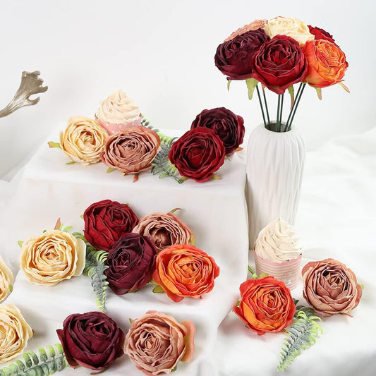 IPOPU Artificial Flowers Rose Heads 25PCS Artificial Rose Flower for Decorations Dried Flower Rose Heads Bulk for Wedding Flower Wall Decor Bridal Party Room Decor (Sunset Mixed)