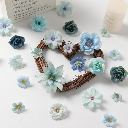 Faux Flower Heads Small Silk Artificial Flower DIY Fake Mini Flowers Rose Daisy Multicolor Flowers Craft Supplies for Wedding Party Wreath Graduation Season Party Home Decor (45, Blue)