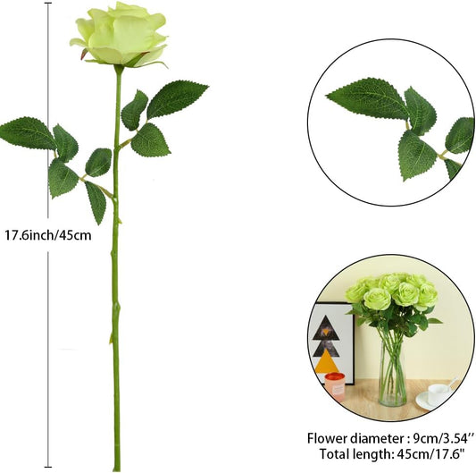 12pcs Roses Artificial Flowers Fake Roses Green Silk Roses White Silk Flowers Rose with Long Stems for Wedding Home Party Centerpieces Decorations