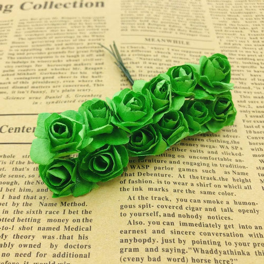 Mini Fake Rose Flower Heads 144pcs Mini Artificial Mulberry Paper Roses Flower with Wire Stem DIY Wedding Flowers Accessories Make Bridal Hair Clips Headbands Dress (Green)