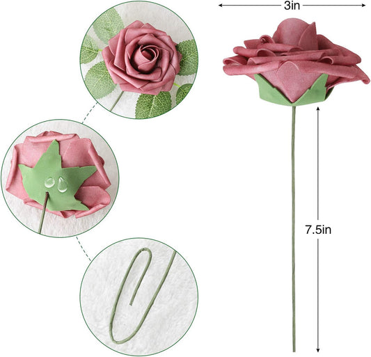 AmyHomie Artificial Flower Shades of Rose 25pcs Real Looking Fake Roses w/Stem for DIY Wedding Bouquets Centerpieces Arrangements Party Baby Shower Home Decorations