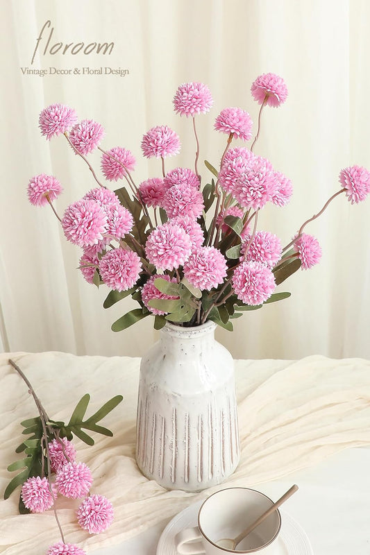 Floroom 5pcs Fuchsia Pink Faux Silk Mums Artificial Flowers, Bulk Fake Small Mini Chrysanthemums with Stems for DIY Wedding Centerpieces Floral Arrangements Vase Fillers Home Decorations
