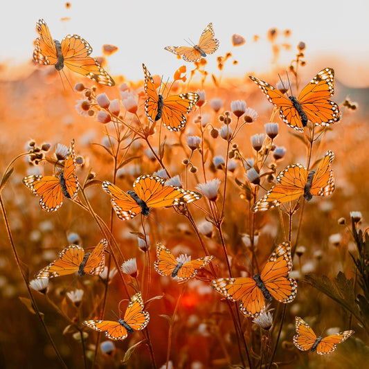 Cartanfill-Monarch Butterfly Decorations, 12PCS Feather Butterfly Decorations Set with Clip for Wedding Party Home Decor