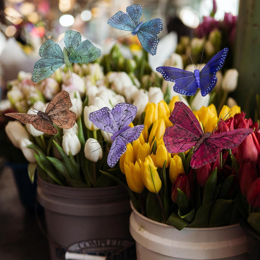 YCHTEWY-Decorative Butterfly Clips, 3D Artificial Silk Butterflies, Multicolor, 12-Pack, Home and Floral Decor (B Wire)