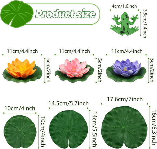 10pcs Floating Foam Lotus Flowers with Artificial Frog Lotus Leaves, Lily Pads for Lake, Artificial Pond Plants Ornaments for Pool Aquarium Water Decoration, Colorful