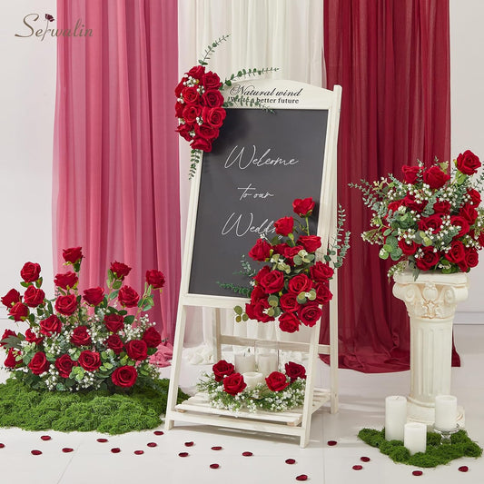 Serwalin 60 PCS Red Artificial Roses Bulk, Realistic Silk Fake Roses for Bridal Bouquet Wedding Centerpieces Table Arrangement Party Home Decor