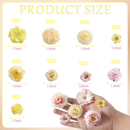 Faux Flower Heads Small Silk Artificial Flower DIY Fake Mini Flowers Rose Daisy Flowers Craft Supplies for Wedding Party Wreath Graduation Season Party Home Decor (125, Yellow Pink)