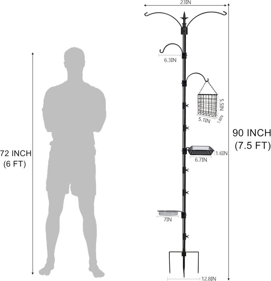 yosager Premium Bird Feeding Station Kit, 90" x 23" Birds Feeder Pole, Planter Hanger, Multi Feeder Hanging Kit with Metal Suet and Bath for Bird Watching, Attracting Wild Birds
