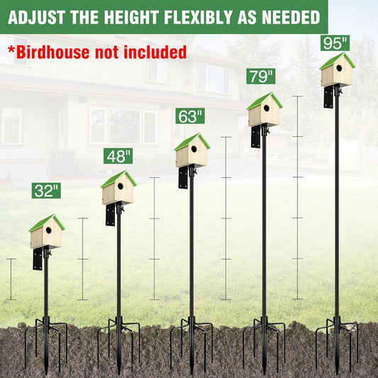 Bird House Pole, 95 Inch Heavy Duty Bird Feeder Pole Mount Kit for Outdoors, Adjustable Bird Feeding Stand, with 2-Hooks, 5-Prong Base for Birds Watching