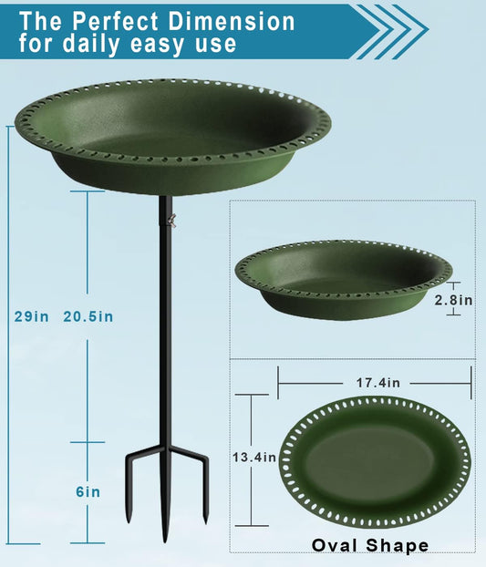 Koutemie 1-¼ Gallon Detachable Freestanding Garden Bird Bath Bird Feeder Bowl with Metal Stake for Outdoor, Deep Green, 29 Inch