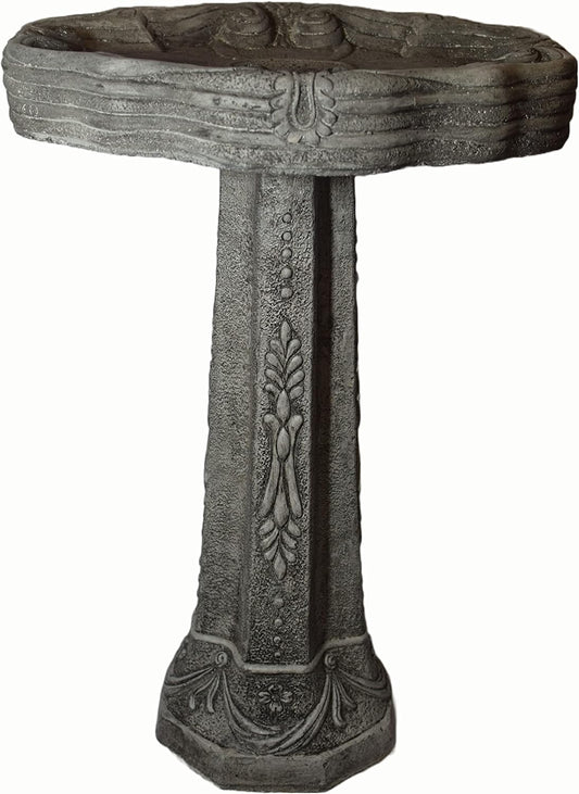 Dogwood Birdbath 27in Tall x 18in Diameter 2pc Pre Aged Grey Color