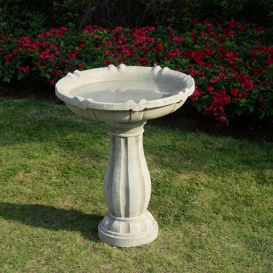 Bird Bath for Outdoor - 26'' Tall Resin Stone Modeling Design Birdbaths, Lightweight and Durable - Enhance Your Outside Garden with This Stunning Water Feature (Ivory White)