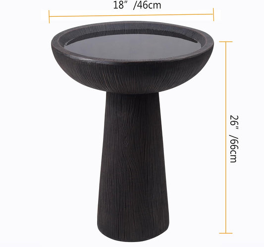 Bird Bath for Outdoor - 26'' Tall Resin Natural Wood Pattern Designt Birdbaths, Lightweight and Durable - Enhance Your Outside Garden with This Stunning Water Feature (Wood Grain)