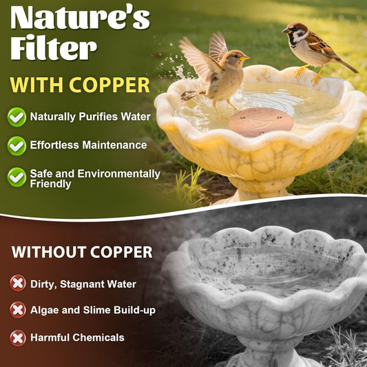2PCS Bird Bath Copper Disk,1mm Thick Reinforced 99.99% Pure Copper Disc with Triple-Point Support,Bird Bath Accessories for Outside Birdbaths Bowls Physical Safe Water Cleaner for All-Season Use
