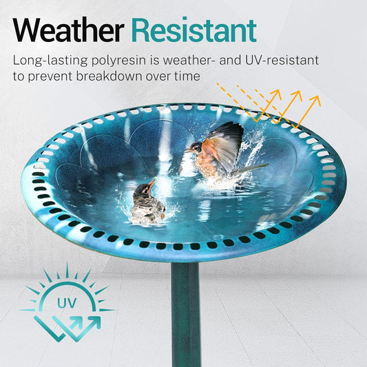 Bird Bath 28 Inch Height, Polyresin Standing Antique Birdbath for Outdoor Garden Decor, Green