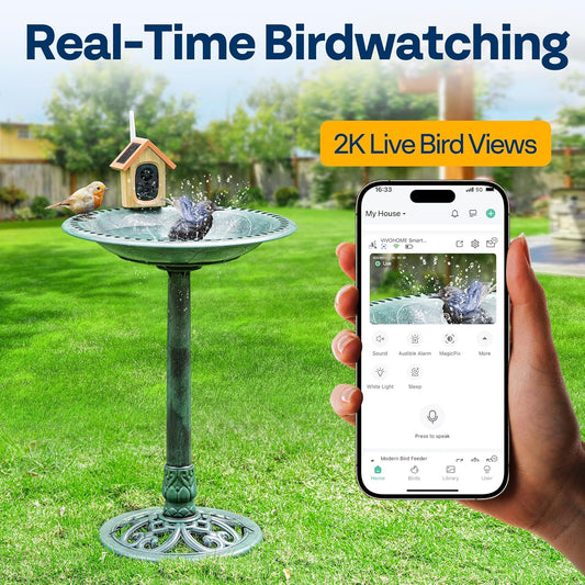 VIVOHOME Smart Polyresin Bird Bath with Camera, 2K HD Solar Powered Outdoor Bird Feeder with Night Vision, AI Bird Identification, Two-Way Audio, Instant Motion Alerts, 2.4GHz WiFi, Green