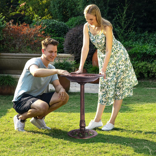 VIVOHOME 28 Inch Height Polyresin Lightweight Antique Outdoor Garden Bird Bath Bronze