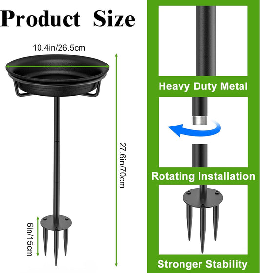 Bird Baths for Outdoors, Detachable Birdbaths for The Garden Clearance, Freestanding Bird Baths for Outdoors Heavy Duty, Bird Bath Bowl Spa & Birdfeeder with Metal Stake Stand (Black)