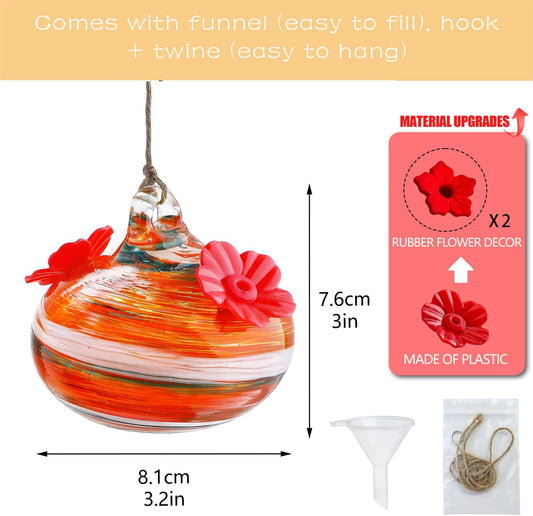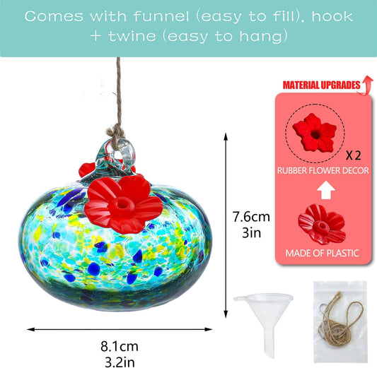Blown Glass Hummingbird Feeders for Outdoors Small Glass Hummingbird Feeders to Attract Hummingbirds Ant and Bee Resistant Round Feeder Unique Gifts for Woman - 2 Feeding Ports
