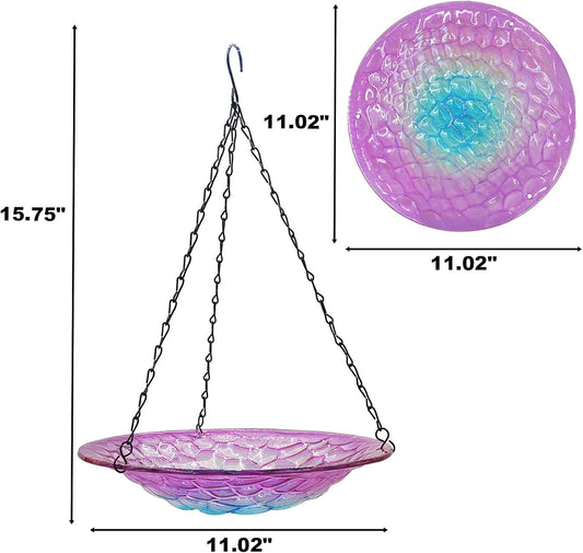 Hanging Birdbath, Outdoor Glass Birdbath, Purple and Blue Texture Pattern Bird Feeder for Garden Patio Decoration