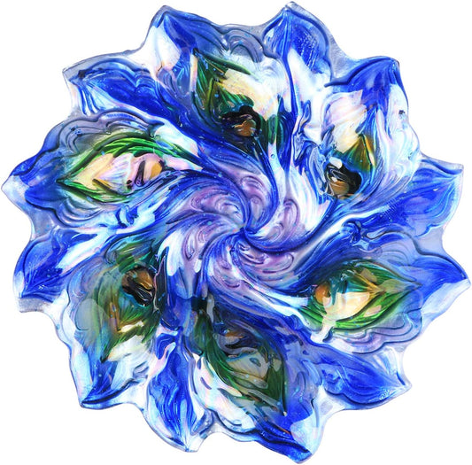 VCUTEKA Outdoor Bird Bath Glass Birdbath Garden Bird Feeder with Metal Stake Blue