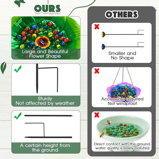 Tandefio Vivid Flower Bee Watering Station Metal Butterfly Water Feeder with 30 Colorful Glass Marbles Bee Feeder Butterfly Bath Bowl for Garden Outdoor Yard Decors(Green,Flower)