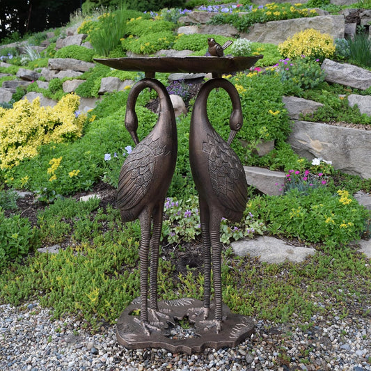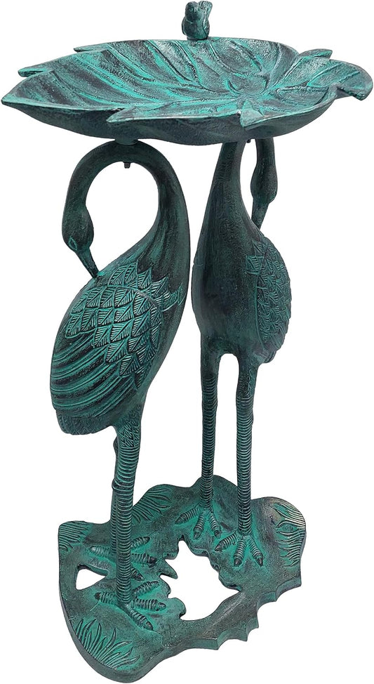 Oakland Living 2-Crane Lily Bird Bath, Antique Bronze, 16.75W x 16D x 29.5H inches