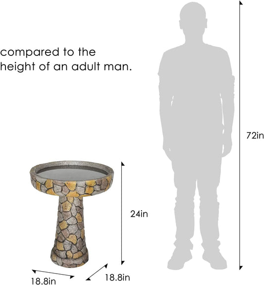 Outdoor Concrete Bird Bath - 24" H * 18.8" Φ Mosaic Stone Design BirdBath Perfect for Adding Interest to Garden, Patio, Backyard, Porch and Deck