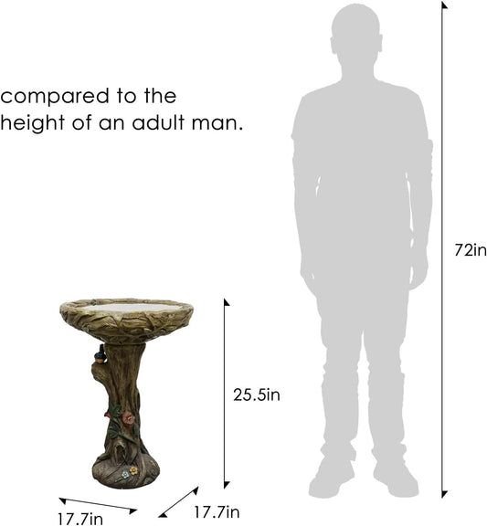 25.5" H Concrete Tree Shape Bird Bath with Decorative Faux Bird – 25.5" H * 17.7" Φ Rustic Design Birdbath, Enhances Garden, Patio, Yard, Lawn Décor