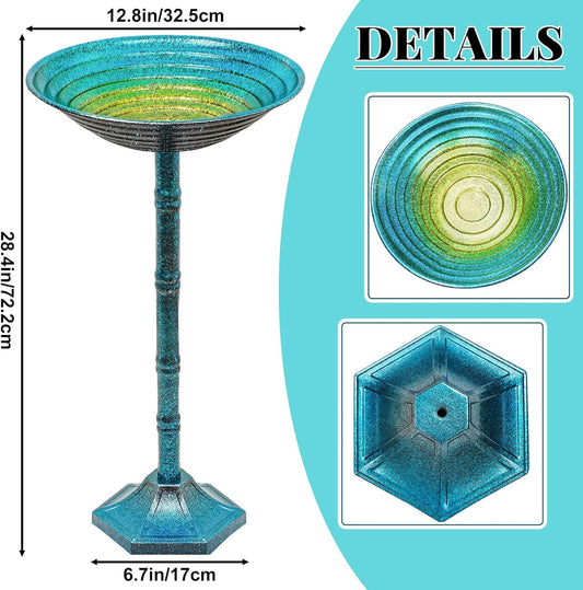 Metal Bird Bath for Outside, Freestanding Garden Metal Birdbaths with Stable Upgrades Stake, Easy to Clean Birdfeeder for Outdoors Garden Yard Lawn Decor(Blue)