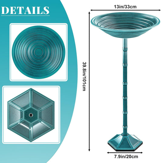 Bird Bath for Outside with Pedestal, Vintage Freestanding Garden Metal Birdbaths & Birdfeeder, Birdbaths Bowl Bird Baths for Outdoors Yard Garden Lawn Decor (Green)