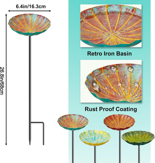 Metal Flower Bird Bath for Outside, Small Hummingbird Bath Bowl Detachable Birdfeeder Bowl Garden Decor for Outdoor Yard Lawn (4PCS-Flowers)