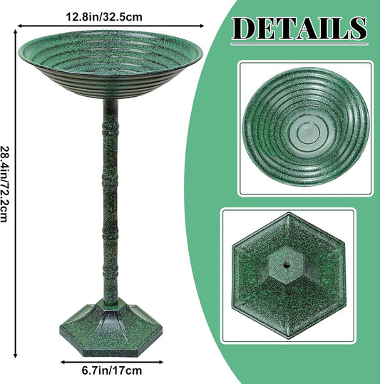 Bird Bath for Outside with Pedestal, Vintage Freestanding Garden Metal Birdbaths & Birdfeeder, Birdbaths Bowl Bird Baths for Outdoors Yard Garden Lawn Decor, Upgrade Dual-use Base (Dark Green)