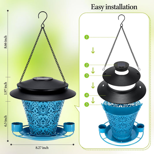 Solar Bird Feeders for Outside Hanging Metal Wild Bird Feeder Solar Lanterns Outdoor Waterproof Garden Decor for Yard Blue