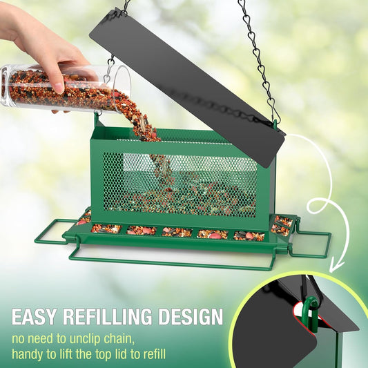 Metal Squirrel Proof Bird Feeders for Outdoors Hanging,Weight-Activated Large Capacity Feeder for Wild Finch, Cardinal,Blue Jay, Chickadee, Weatherproof and Durable 4 Perches,Green